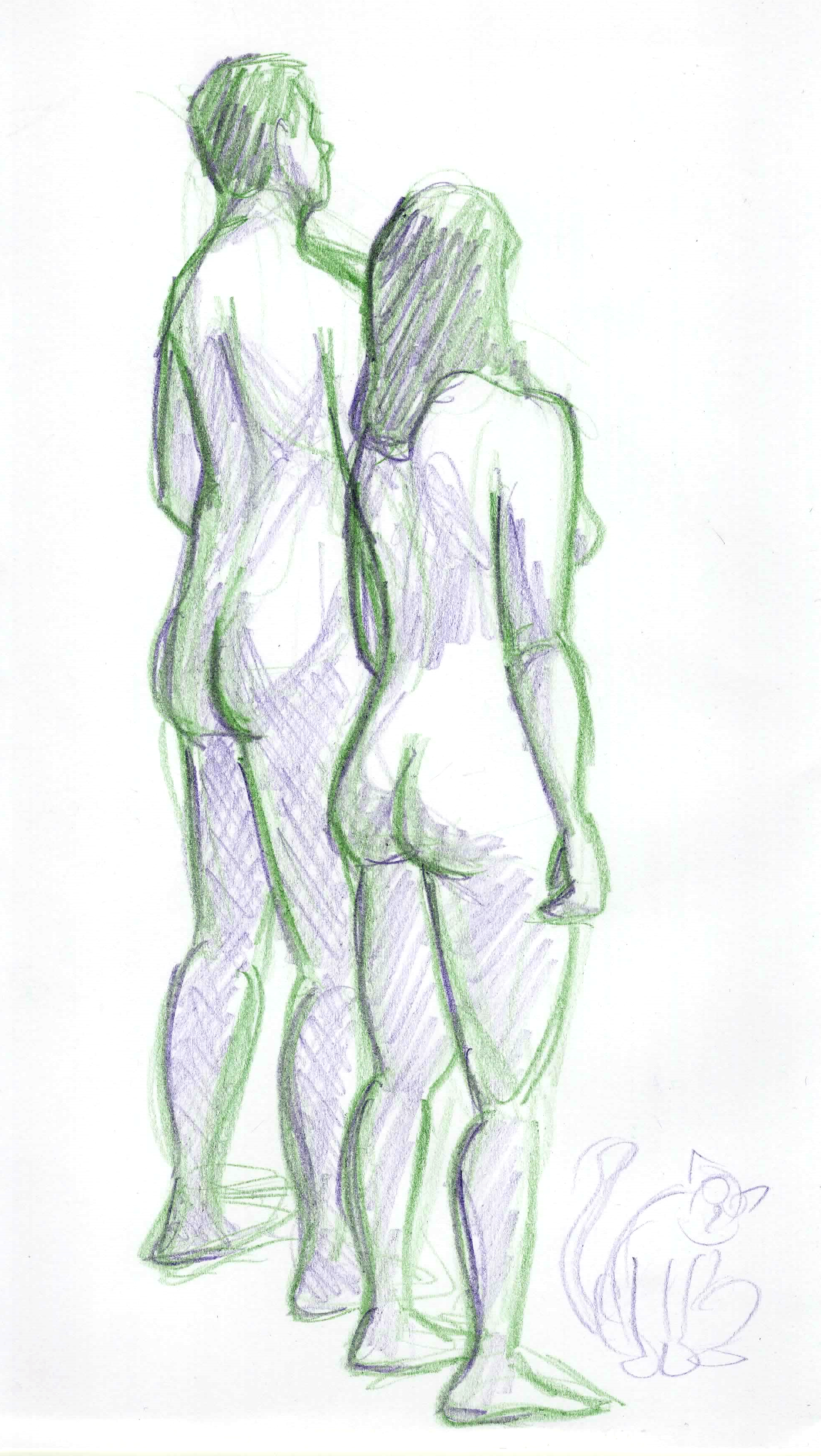 Tried out another new life drawing group with a sister while cat-sitting in Exeter, and quite a different atmosphere again. One of the more laid-back sessions I’ve been to. The models had provided their own soundtrack and slipped in amongst the music some recorded ponderings, teasing the organiser and each other; most chuckles I’ve heard while life drawing.